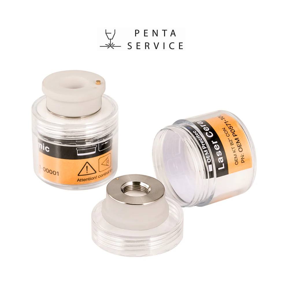 Держатель сопла предназначен для работы в качестве изолятора для корректной работы датчика слежения за поверхностью. Керамическая проставка является держателем сопла диаметром 28 мм. Выполняет изоляционные функции, препятствует нагреванию нижних частей лазерной головки.
